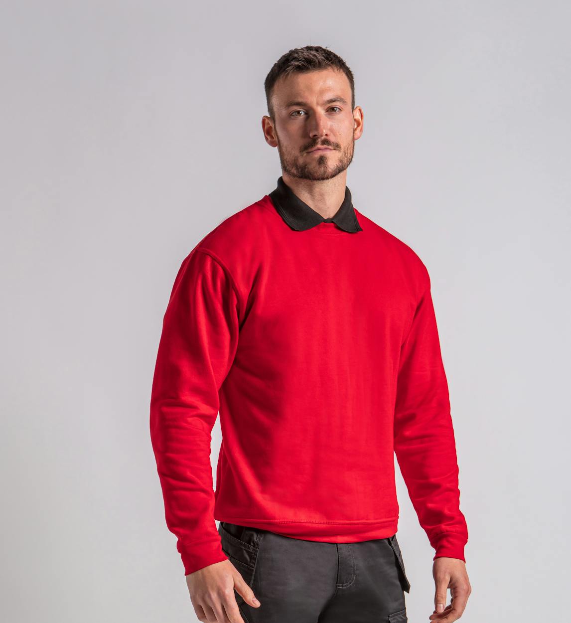 The Pro sweatshirt is designed with a modern yet comfortable fit with added design features of a ribbed crew neck style, with ribbed cuffs and hem. It also has a taped neck and twin-needle for durability. WRAP certified. SEDEX certified.